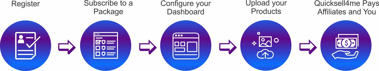 You rely Quicksell4me’s affiliate management tools to route the incoming funds from each sale, including paying your affiliates and getting you paid.